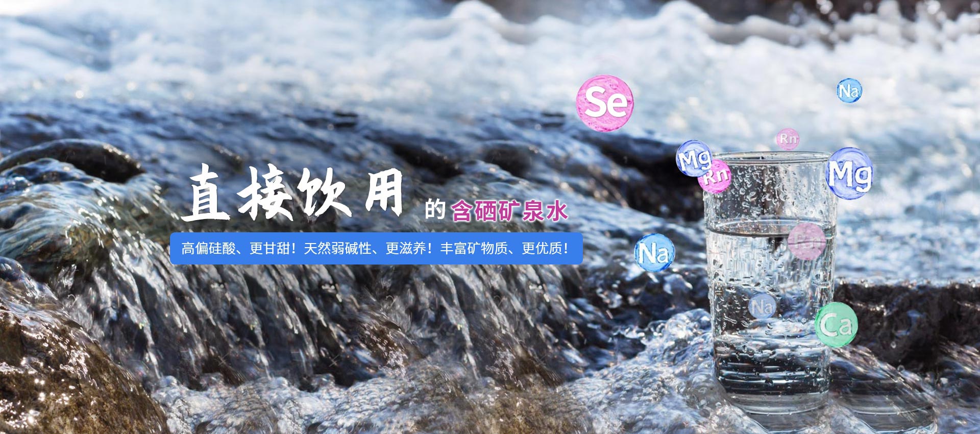 從源頭向全世界供應(yīng)天然礦泉水,口感純正,清冽甘甜!